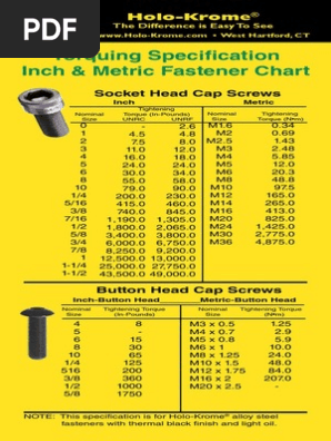 [Download 23+] Socket Head Bolt Torque Chart